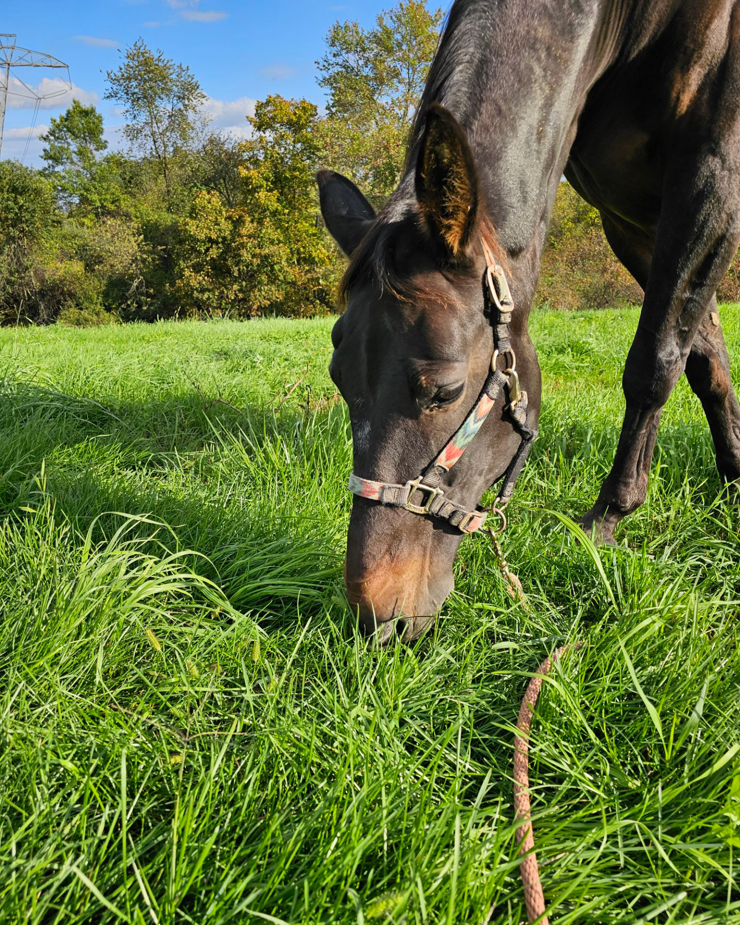 Captain Molasses is a 21-year-old Standardbred gelding with a heart as steady as his stride. He came to us through the Standardbred Retirement Foundation after his previous adopter, who had been training him for therapy work, suffered an unfortunate accident.